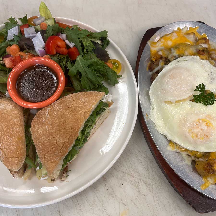 Café Catron offers a place to eat a great meal and enjoy the ambiance of Santa Fe. We are only a 5 minute walk from the historic Santa Fe Plaza and we offer generous parking and a beautiful outdoor patio. Our influences are comforting classics like pancakes, waffles, benedicts, salads and hearty sandwiches with an appreciative nod to the Southwest that include Huevos Rancheros, Chilaquiles, Eggs Yucatecos and the always tasty New Mexico Burger. Pair with a local craft beer, a light sparkling wine, a cup or coffee or your favorite fountain drink, Café Catron provides a delicious dining experience!